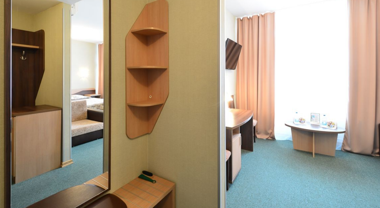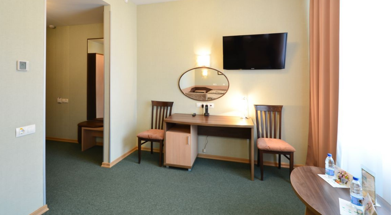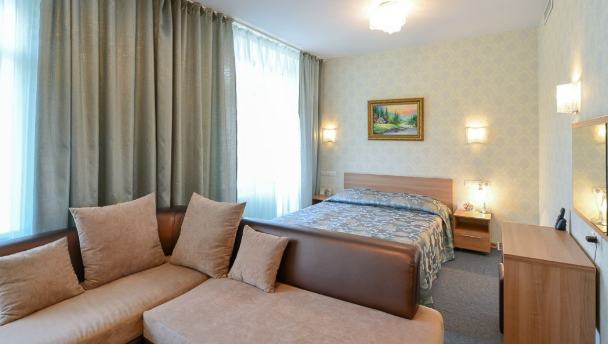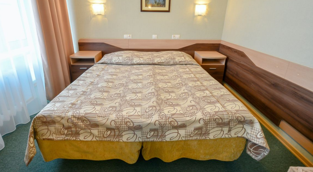 Площадь номера - 30 кв.м. 2 осн. места. 2 доп. места. Балкон. Мебель: вешалка, зеркало, кресло-кровать (2), кровать двуспальная, прикроватные тумбочки, стол, стулья, шкаф. Оборудование: кондиционер, стиральная машина, телевизор, телефон, холодильник, чайный набор посуды, электрочайник. Санузел: биде, с ванной, туалетные принадлежности, фен. Сервис: Wi-Fi бесплатно, смена полотенец, смена постельного белья, уборка номера.